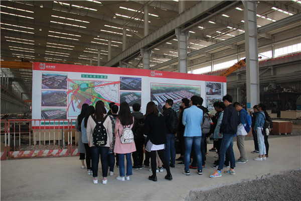 前往企业途中,同学们与企业接待负责人进行了愉快的交流。在到达公司后,实践团队进入一号车间,实地观察车间建设情况。企业接待负责人分别从公司的整体布局、投资规模、施工加工中心、车间设备技术以及公司的未来发展前景等几个方面对忠旺集团进行了详细的介绍,同学们针对公司发展和就业前景等问题进行了提问,企业相关人员进行了详细的解答。